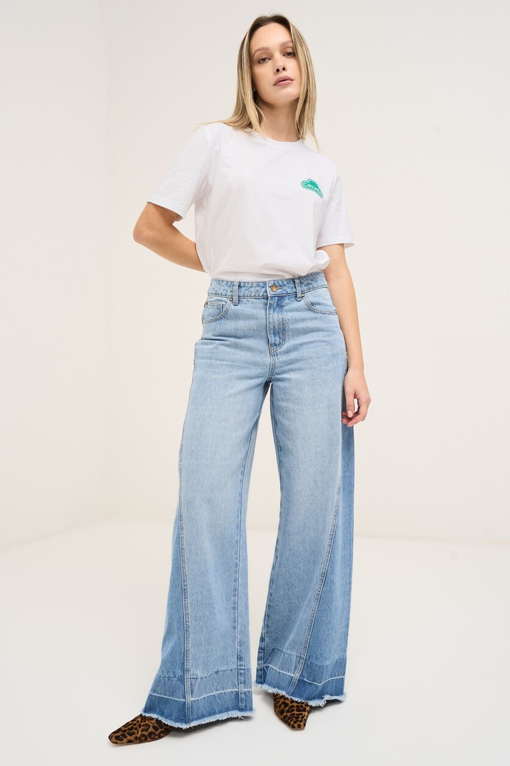 As calças de ganga Degan, confecionadas em 100% algodão, combinam conforto e estilo com a sua perna larga e o seu corte dinâmico. O modelo de 5 bolsos é realçado por inserções e detalhes laterais tom sobre tom. A estética vintage é realçada pela etiqueta verde na parte de trás e pelo acabamento «desgastado chique»: a bainha aberta e virada na parte inferior confere um look deliberadamente desgastado e descontraído. Combine-os com uma peça de cima sofisticada (como uma camisa de seda) para realçar o contraste de estilos. A modelo mede 1,75 M e veste o tamanho S