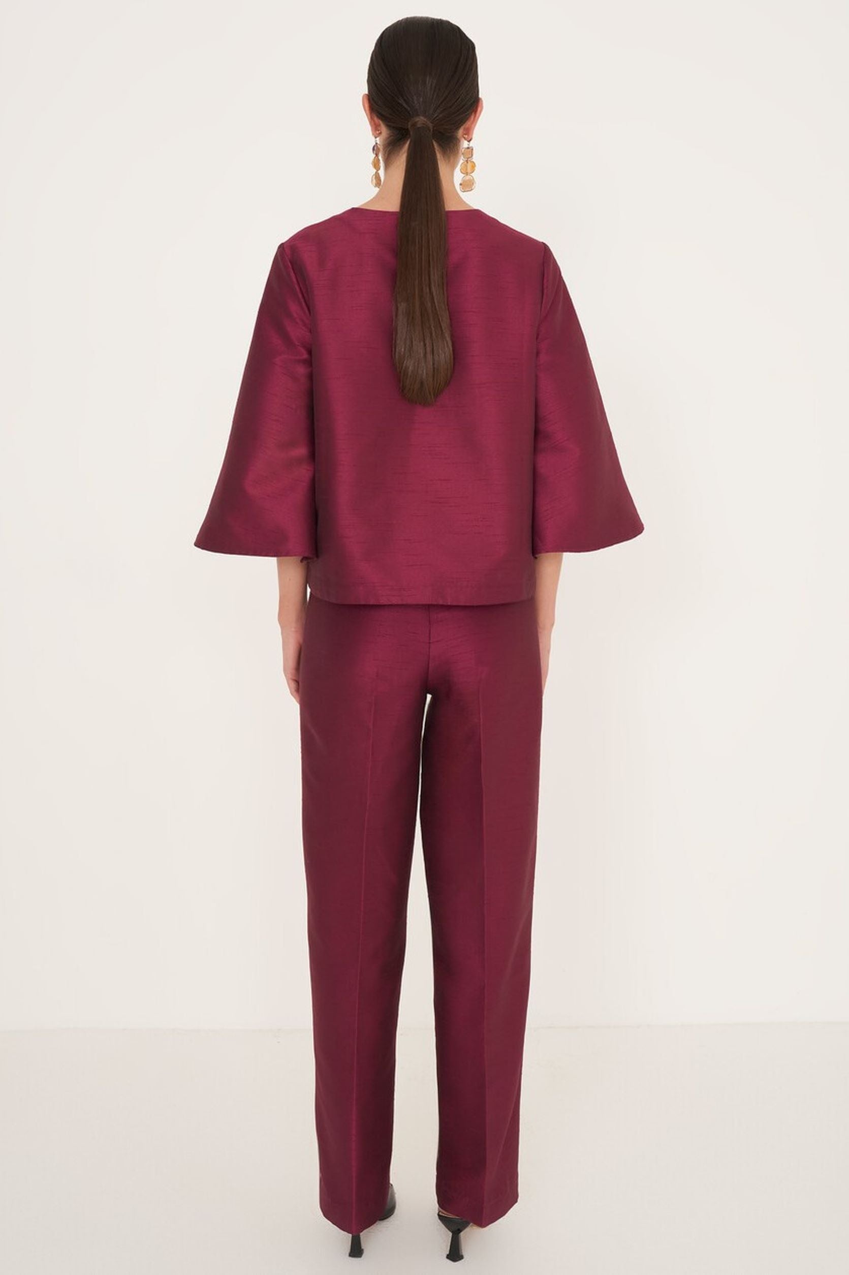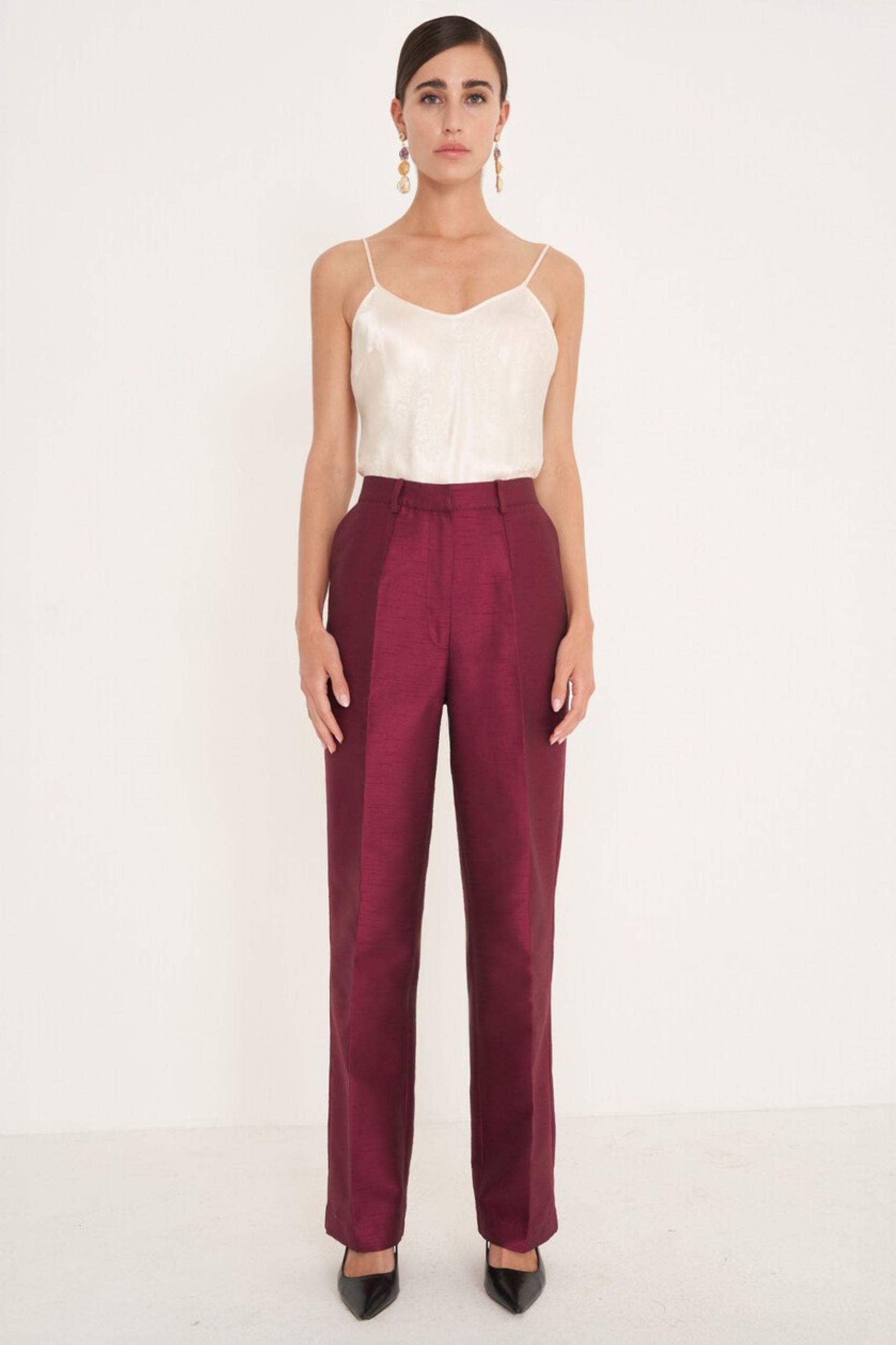 As calças Paul, confeccionadas em tecido shantung, apresentam um corte masculino com perna reta e ajuste regular. Concebidas com bolsos laterais, presilhas para cinto, cintura elástica nas costas e fecho com botão e zíper na frente. Uma nova forma de usar elegância — confortável, prática e combinada com a camisa Caryl a condizer.
