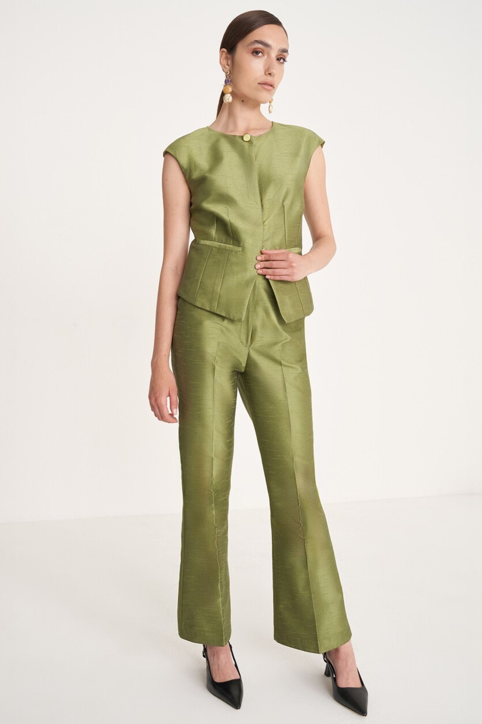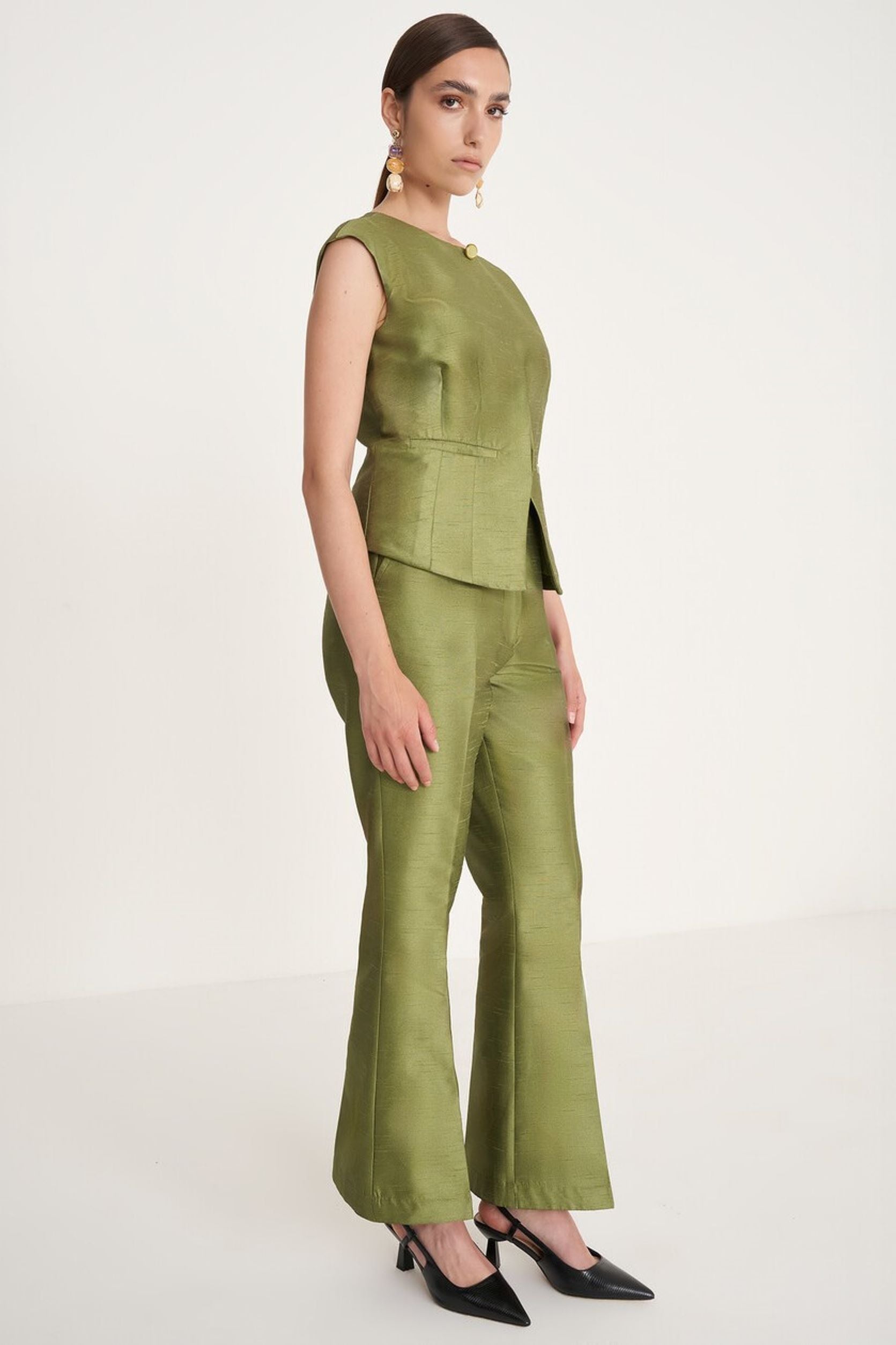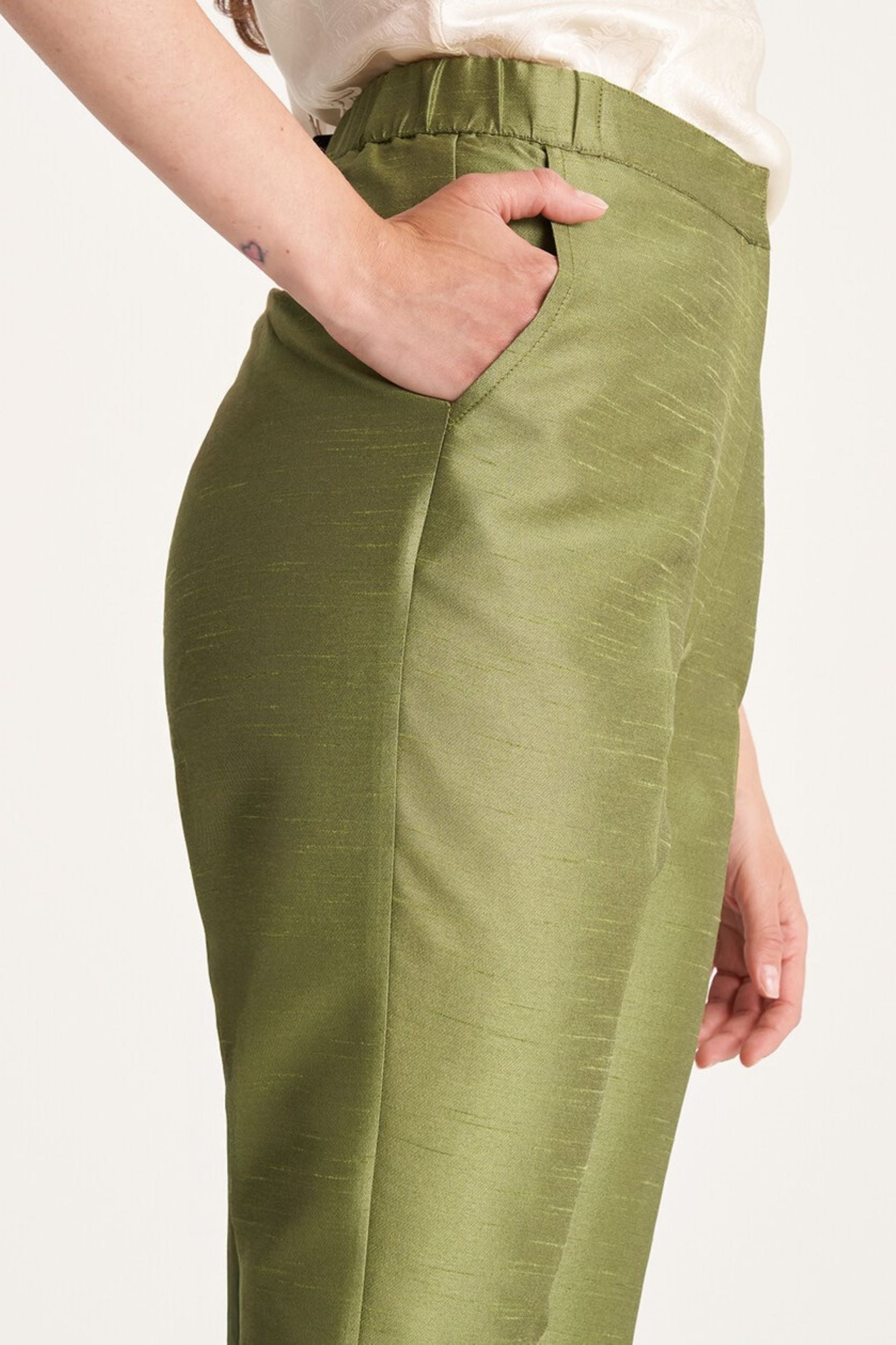 As calças Pedro, apresentam cintura alta e corte justo com um ligeiro alargamento na bainha — uma versão original da alfaiataria clássica. O elástico na parte de trás garante um ajuste ideal, enquanto o fecho com zíper e botão na frente adiciona praticidade. Combine com saltos altos para um look refinado ou sandálias com joias para um brilho extra. Combina perfeitamente com a camisa Cathyn.