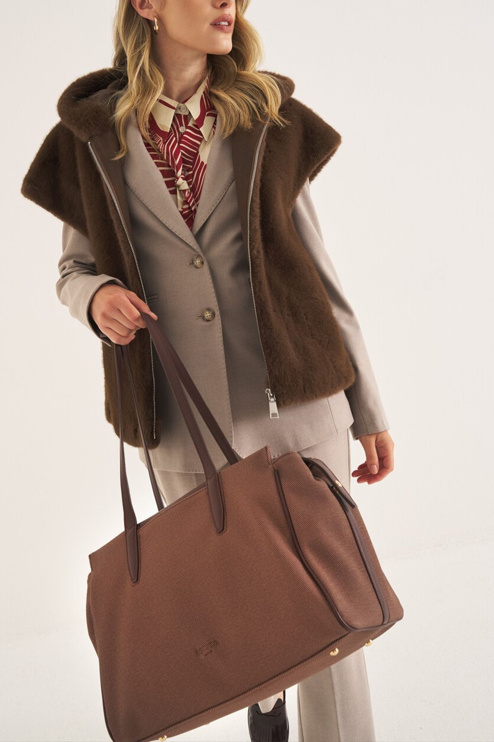 A bolsa Bess é faz de saco de viagem em estilo profissional, em couro sintético com efeito texturado e acabamentos em couro sintético liso.
