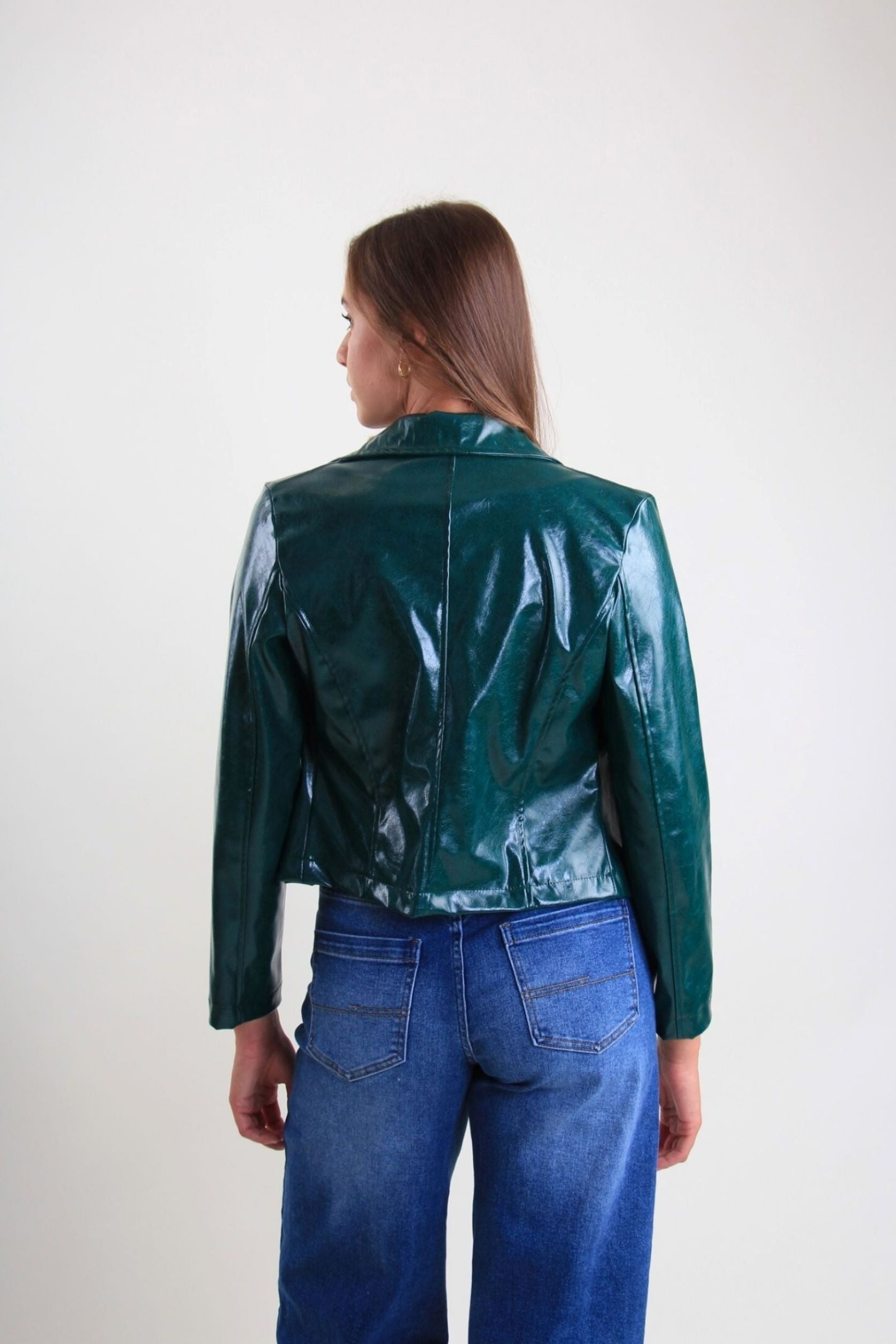 Ousada, feminina e impactante: o casaco com efeito de couro brilhante da é a peça ideal para completar os looks mais ousados. Confecionada em tecido revestido com acabamento brilhante, este casaco valoriza a silhueta com sua linha estruturada, gola larga e fecho de zíper assimétrico. Perfeita para usar aberta sobre tops e camisolas justas, ou fechada como peça principal do look.